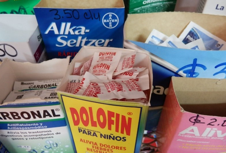 Pharmacies (which often double as general stores) in the mountainous regions of Central and South America sell cough syrup and powdered milk in small portions. In addition to medicines, it is also common to sell items such as gauze bandages, disposable diapers, contraceptives, and sanitary products, and others in bulk.